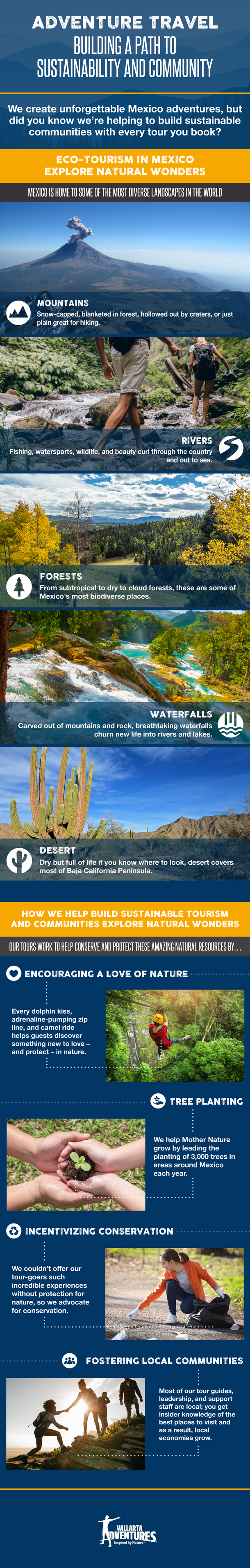 Our exciting eco-tours pack thrilling activities that will leave you with unforgettable memories. When you join us on our exciting outdoor excursions, you will explore some of Mexico's most diverse and awe-striking landscapes. At Vallarta Adventures, we are mindful to appreciate Mexico's incredible wildlife and our tours work to help conserve and protect these natural resources. Read on to learn about our sustainability efforts.